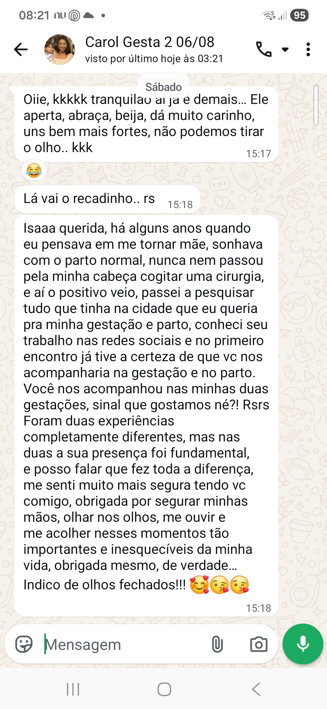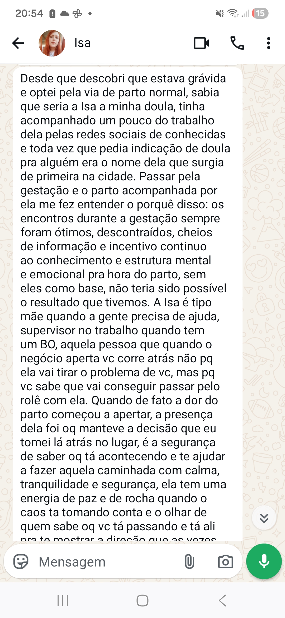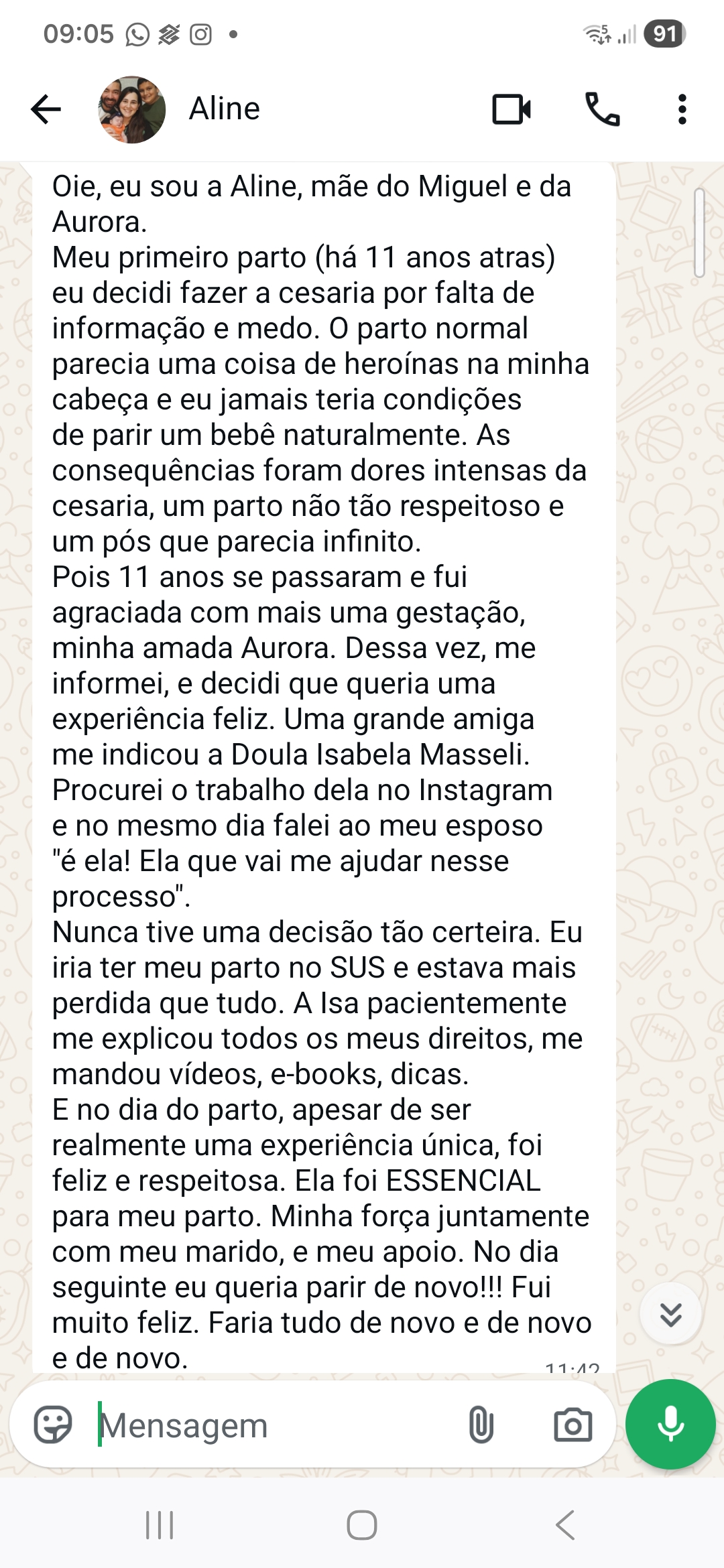 Isa é doula, mãe de dois meninos e já acompanhou mais de 500 partos. Mas ela não fala sobre isso só por profissão. Ela fala porque já viveu o medo e já viveu a transformação.